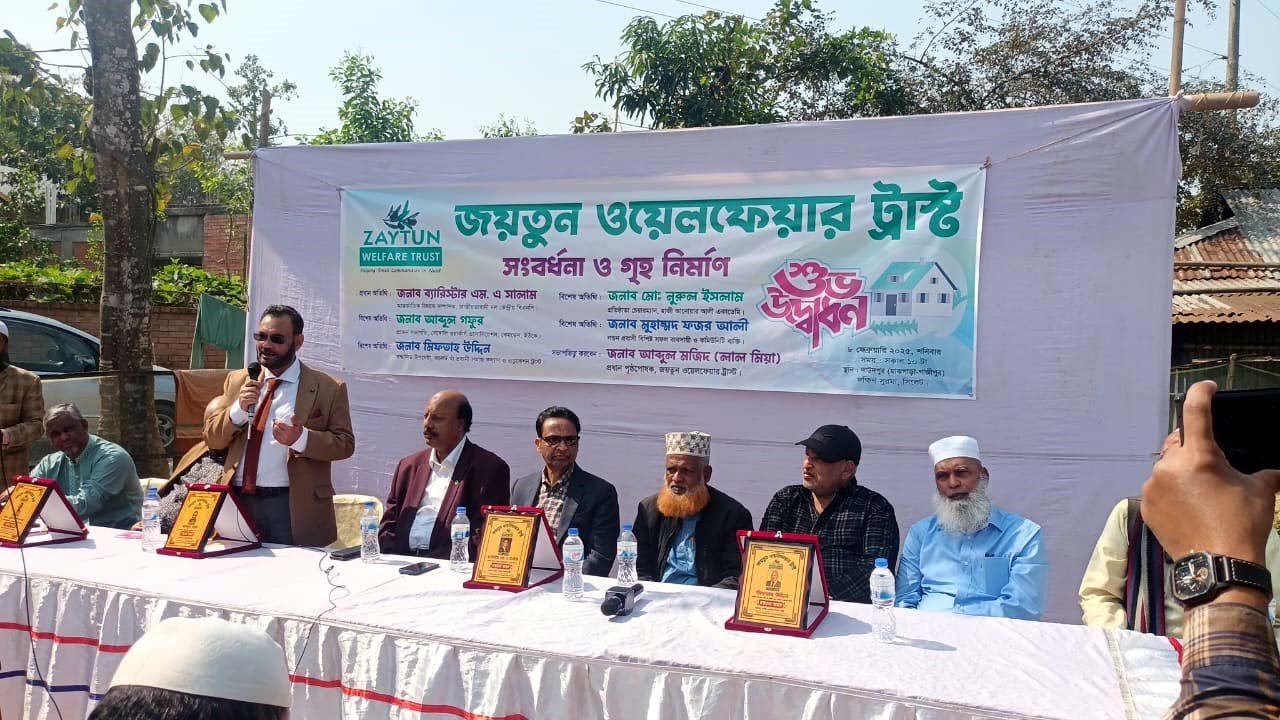 গৃহহীন পরিবারের পুনর্বাসনের লক্ষ্য জয়তুন ওয়েলফেয়ার ট্রাস্টের উদ্যোগে সংবর্ধনা ও গৃহ নির্মাণের শুভ উদ্বোধন অনুষ্ঠিত